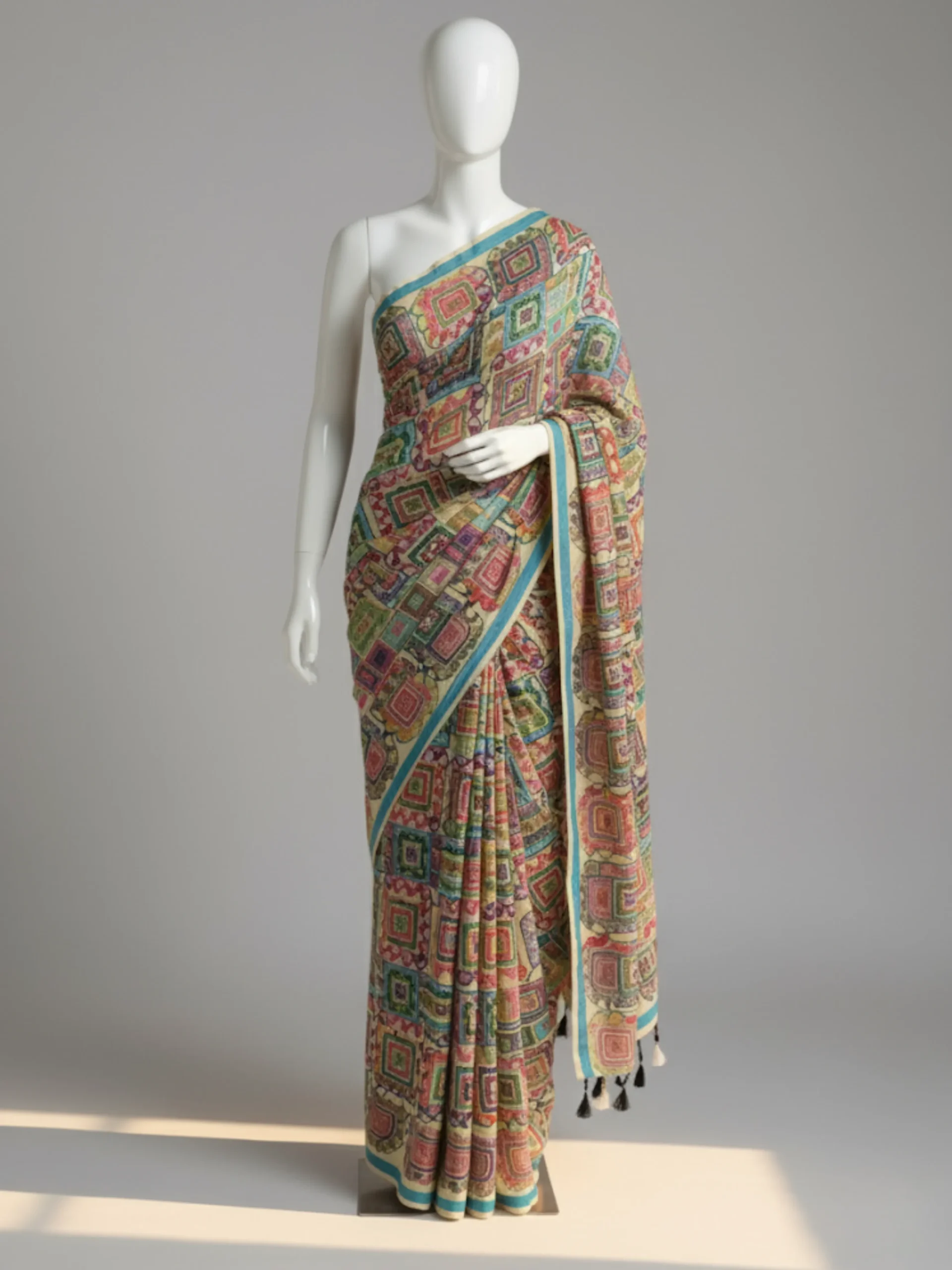 ফ্লোরাল উইভ সেমি-মসলিন শাড়ি মাল্টি-জিও (MG-07)