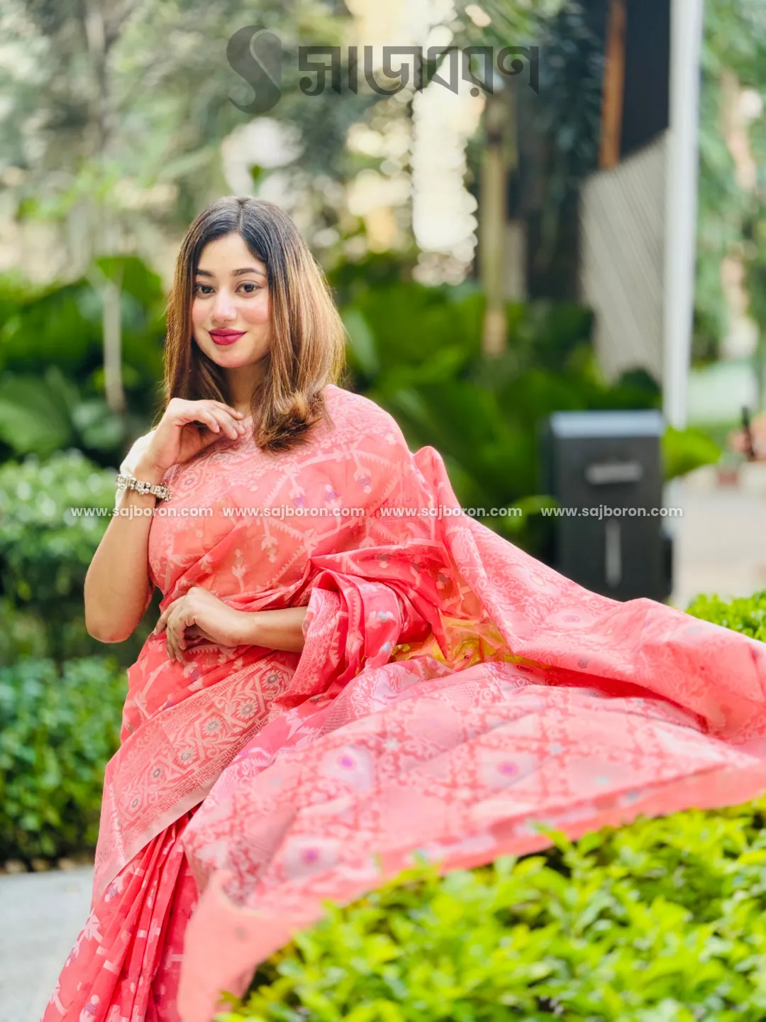 মাপ: সঠিক ১২ হাত লম্বা এবং যথাযথ চওড়া, যা যেকোনো উচ্চতার নারীর জন্য মানানসই।