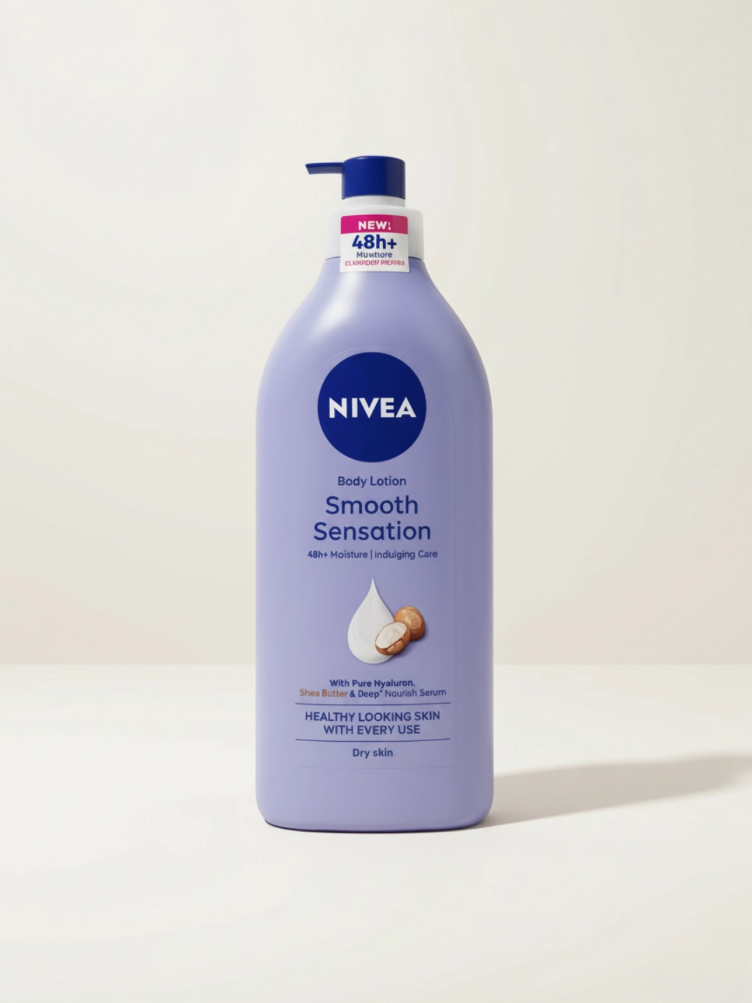 NIVEA Smooth Sensation Body Lotion is enriched with Pure Hyaluron, Shea Butter, and Deep Nourish Serum to provide long-lasting hydration for dry skin. It delivers 48+ hours of intense moisture, leaving skin soft, smooth, and healthy-looking. Comes in a large pump dispenser bottle.