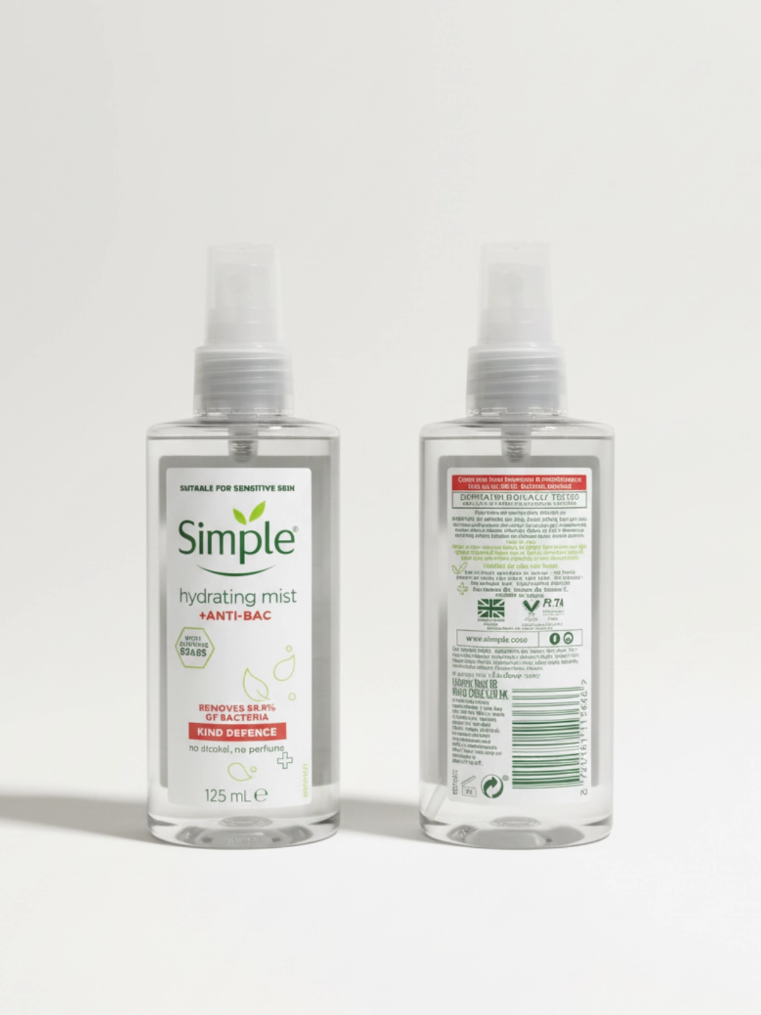 Simple Hydrating Mist + Anti-Bac from the Kind Defense range provides hydration and antibacterial protection. Alcohol-free, paraben-free, and vegan, it removes 99% of bacteria while being gentle on sensitive skin.